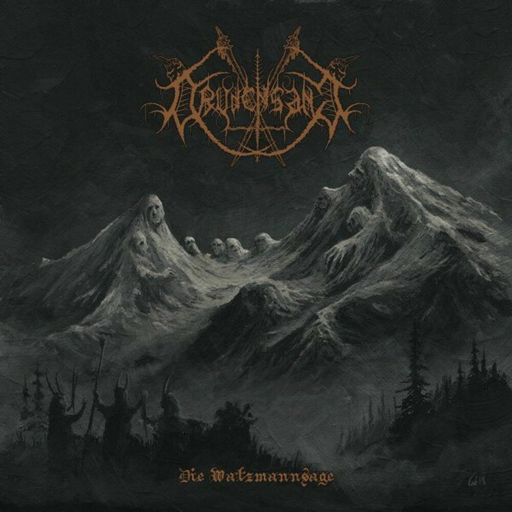 En 2022, pour son premier album, Drudensang nous avait déjà fait le coup de l’intro installent une atmosphère angoissante. Ici, il va encore plus loin… et finalement trop : le prologue qui ouvre l’album, du moins sans l’apport de la compréhension de la langue, n’a que peu d’intérêt. Musicalement parlant, on a rien ou presque. Une voix chuchote un texte, et pour moi ça pourrait tout aussi bien être l’histoire du lapin curé qui s’appelle Bugs Béni qu’un fait divers macabre ou une ode au malin. C’est donc “Gesitersphären” qui pour moi introduit véritablement ce deuxième opus des allemands. Un titre purement black metal atmo, cru et froid, avec un chant criard comme on l’aime et un riff tranchant comme un slip rouge sur un justaucorps bleu. De là à dire que Drudensang a un super pouvoir capable de faire fondre la glace, il y a un pas que je ne franchirai pas. Non, les bavarois ne revendiquent rien d’autre que le fait de connaître parfaitement ses gammes du genre. Bon, je vais vous le dire ; au départ, je me suis demandé pourquoi sur cet album / ep (6 titres, 33 minutes) le groupe effaçait un peu ses qualités dark ambiant pour se recentrer vers quelque chose de plus brut. Et bien la réponse est simple ; parce que “Die watzmannsage” n’est pas du tout le nouvel album du groupe, mais la réédition de son premier ep agrémenté de titres d’un split. Ce n’est donc pas une évolution mais un rappel, un flashback, une préquelle pour mieux cerner d’où est parti le groupe. Et quelque part, ça me rassure. Non pas que le disque soit mauvais, loin de là, mais pour moi il lui manque quand même un peu de personnalité et de maturité. Bien sûr, on y trouve un chant épique (sur “Ewige gegenwart”, reprise du groupe folk expérimental Sturmpercht, et sur la chanson-titre), mais à part ça… on retrouve aussi l’obsession du groupe pour les légendes et le folklore de ses Alpes natales, les créatures maléfiques et les titres plutôt longs. Agréable sans être renversant, le disque s’adresse aux puristes et aux curieux, mais ne génèrera pas forcément d’adhésion immédiate car un peu trop classique. Par contre, si vous le comparez au disque chroniqué ici ou au très bon “Geystersvvang” que j’ai loupé en 2025, on se dit que le combo a vraiment progressé et dans le bon sens, et qu’il est à tenir à l’oeil !