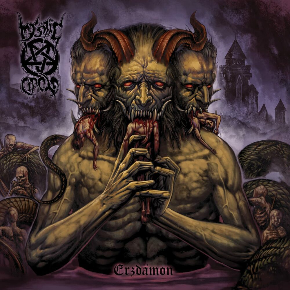 J’avais trouvé le retour des allemands avec leur album éponyme bon mais insuffisant. Ce sont des choses qui arrivent. Mais, attendez, c’était l’an dernier les gars ! Sortir deux disques à un an d’intervalle, c’est un peu excessif, non ? En tout cas, c’est ce qu’on pourrait légitimement penser. Mais voilà, le résultat est à mon sens bien différent de l’album qui m’avait un peu échaudé. Je lui avais en effet reproché de se montrer un peu trop proche de ce qu’on pouvait en attendre, de ce qu’on connaissait du groupe. En fait, « Erzdämon » est le disque que Mystic Circle aurait du sortir lors de son come-back : une orchestration intelligente et moderne, des mélodies et un riffing forts et efficaces, et des ambiances horrifiques et occultes vraiment bien rendues, qui apportent beaucoup aux titres (et sur lesquelles le groupe devrait encore plus s’appuyer à l’avenir, car il est vraiment doué pour ça). Le tout sans dénaturer le son et la forme plutôt revival nineties de la horde. L’intensité est parfois mise en pause pour donner plus de latitude aux riffs et à l’ambiance pesante, et c’est plutôt un bon calcul. On a aussi droit à trois vidéos qui mettent en scène des titres du disque : celles-ci sont conçues comme des petits films, avec intro et outro soignées. Bon, pour le contenu, ça reste un peu artisanal et caricatural, mais c’est une belle attention de la part du label quand même. Le groupe se paie même le culot de terminer sur un titre plus atmosphérique que black. « Erzdämon » n’est pas encore l’album ultime, puisqu’on sent que la courbe de progression est en cours, mais Mystic Circle a fait un pas de géant ici, et on peut l’applaudir d’avoir réussi ça en si peu de temps !