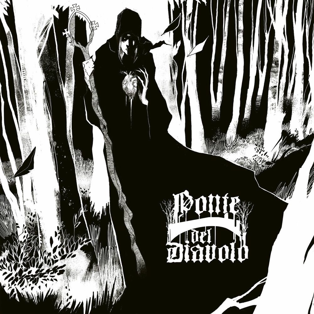 Formé en 2020 à Turin, Ponte Del Diavolo s’appuie sur les expériences et influences de ses membres issus de pas mal de formations (Feralia, Inchiuvatu, Abjura et Askesis) pour bâtir une cathédrale de metal hybride. Leur style, ils le qualifient de blackened post-punk, mais je ne l’aurais pas forcément appelé comme ça. Comment alors ? Bah, euh, j’t’en pose des questions moi ? Non, mais ok, il y a bien des vocaux plutôt black, quelques ambiances plus post punk, c’est clair. Mais on y trouve aussi des influences bien doom, voir gothic metal, et des plans de guitares plus metal alternatif. Avant-garde ? Oui, on se rapproche. Ah, et oui, il y a deux basses ici. Et si en plus on rajoute que la plupart des titres de l’album sont interprétés en italien et qu’on y trouve aussi ici du trombone, là du theremin, là encore de la clarinette, vous aurez compris que le groupe a à coeur de proposer quelque chose de très personnel, une expérience qui marque. Et c’est vraiment l’impression que ça m’a fait à la première écoute forcément distraite et ultra-rapide, celle grâce à laquelle je détermine si oui ou non je donne la chance (ou pas) à un disque d’être chroniqué ici. « De venom natura » est donc différent. La voix de Erba Del Diavolo est à la fois claire et mouvante, se détachant du reste, amenant un petit feeling old school heavy metal / cold wave mais pas non plus trop marqué, chargée d’une théâtralité certaine. La basse… Bah forcément, amène du groove déjà, alors deux ? La guitare sonne tantôt classique, empruntant des sonorités metal extrême, tantôt plus aventureuse et rock. La batterie, elle, est appliquée et plutôt sage, peut-être trop parfois. L’ensemble a un son vraiment spécial, un son qu’on ne peut pas vraiment dater et qui le rend intéressant. Il est cependant dommage que certaines mélodies soient un peu en-dessous du brio de l’ensemble des interprètes parfois. Et que le groupe ne joue pas un peu plus sur l’originalité de la présence de certains instruments ; les titres présentant des cuivres, par exemple (et en particulier « Spirit, blood, poison, ferment ») sont délicieux. Mais allez, on prend quand même assez notre pied ici (« Il veleno della natura » est aussi une bombe, et d’autres montrent de belles choses) pour s’autoriser à penser que Ponte Del Diavolo pose sur ce second album les bases d’une révolution à venir… A noter que le groupe termine le disque par une reprise du « In the flat field » de Bauhaus, qui pourra convenir même à celles et ceux qui n’aiment pas forcément l’original (je suis là !).