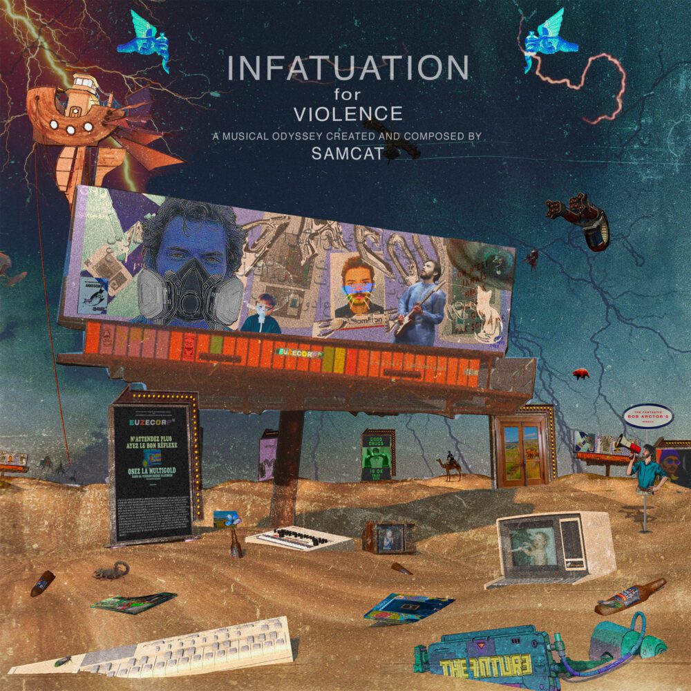 Je l’avoue, je pensais savoir où j’allais en lançant ce nouvel album du nantais Samcat. Une electro pop douce et groovy, un poil timide mais capable de très bonnes idées et mélodies. Sauf qu’ici, le musicien a décidé de pousser ses titres, déjà très empreints de références cinématographiques, plus loin, et de les intégrer au sein d’une véritable démarche totale. De fait, « Infatuation for violence » est un concept-album. On nous le présente (un peu trop longuement, d’ailleurs) sur les deux premiers titres. Les choses commencent vraiment sur « Prohibition », qui n’est pourtant elle-même qu’une intro, mais qui fait preuve d’une ampleur et d’une maîtrise orchestrale qui donnent envie d’en savoir plus… Ce qui aboutit aussi à une petite frustration, puisqu’on enchaîne sur « Subversion on an altered state of mind » qui part dans une autre direction et s’apparente également à une interlude / intro. Parvenus là, il faut que je vous recontextualise la chose. Ce disque traite d’un individu interné, en proie à des démons intérieurs et en opposition à une société dans laquelle il devient de plus en plus compliqué de se reconnaître ; il est donc logique d’y découvrir des ambiances et une musicalité changeantes. Sur « The truth », on retrouve le Samcat qu’on connaît. « Gemini » dévie plus vers une electro pop teintée d’indie qui emploie un chant parlé francophone rappelant Mickey 3D et se termine par une belle partie orchestrale : intéressant et audacieux mélange des genres. L’interlude orchestrale « L’hp » lui fait suite de façon logique. « Court-circuit en psychiatrie » tranche un peu, même si chaque élément est connu ; seule la voix est utilisée façon hip-hop. Dommage que le fonds musical manque de punch par rapport au texte. Même constat ou presque pour « Pilule bleue » et « L’évadé de Sainte-Anne » qui lui ressemblent beaucoup. « Just before the storm » est un titre d’ambiance, à la fois tragique et inquiétant. « Ultraviolence » aurait mérité plus de bpm pour porter son nom, même s’il porte en lui une tension palpable. « La fuite » se la joue évocation soft avec un touché jazz manouche en fonds sonore. Sur la suivante, on retrouve ce goût pour le groove imparable et les ambiances feutrées qui peuplaient les premières œuvres de Samcat. Enfin, « Seuls les morts dansent » nous rappelle que nous sommes encore en vie ; pas de danse pour nous, mais un titre lumineux, solaire, symbolisant la montée vers les cieux de son protagoniste. Au final, je ne sais que penser de cet album ; j’y trouve de bonnes idées, des ambiances et une thématique bien rendues et correspondantes à l’idée de départ mais un manque de matière, de vraies chansons ; un peu frustrant.