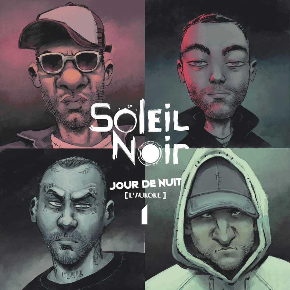 Soleil Noir, c’est une vraie dream team du rap français, l’union de Dooz Kawa, Swift Guad, Davodka et Euphonik. Soit des gars avec de solides backgrounds, des flows en béton et une écriture assurée. Forcément, ce premier opus (dont on espère qu’il n’est que le premier d’une série tellement il envoie du lourd) se montre sombre et riche en egotrip. Les gars exploitent des thèmes assez classiques, et on pourrait regretter que l’ensemble ne brille pas autant que l’unitaire dans ses œuvres propres. Oui, c’est sûr, il y a ici moins d’écriture, moins de poésie, la personnalité et l’univers de chacun se fondant dans l’entité commune. Mais malgré ça, « Jour de nuit » reste une pure tuerie, chaque titre montrant la supériorité de ces gars-là sur 90 % des rappeurs francophones actuels, et particulièrement de ceux qui squattent les charts et les médias. Les productions de Sarbacane sont impeccables, chacune concourt à faire des 13 titres des moments uniques, et cependant toutes se fondent dans un tout cohérent. L’ambiance générale est triste, désabusée, cynique ; on en attendait pas moins de l’addition de la sensibilité des participants. Il sera difficile également de déterminer quel titre est le plus marquant. Parmi ceux qui me restent en tête là, à chaud, je citerais « Ex », « La nuit des dorts vivants », « A ceux qui brûlent » et « Monument », mais je pense vraiment que chaque nouvelle écoute peut charrier de nouveaux coups de coeur. Longtemps annoncé, ce Soleil s’apprête donc à vous noircir l’âme ; souriez, vous êtes cramés !