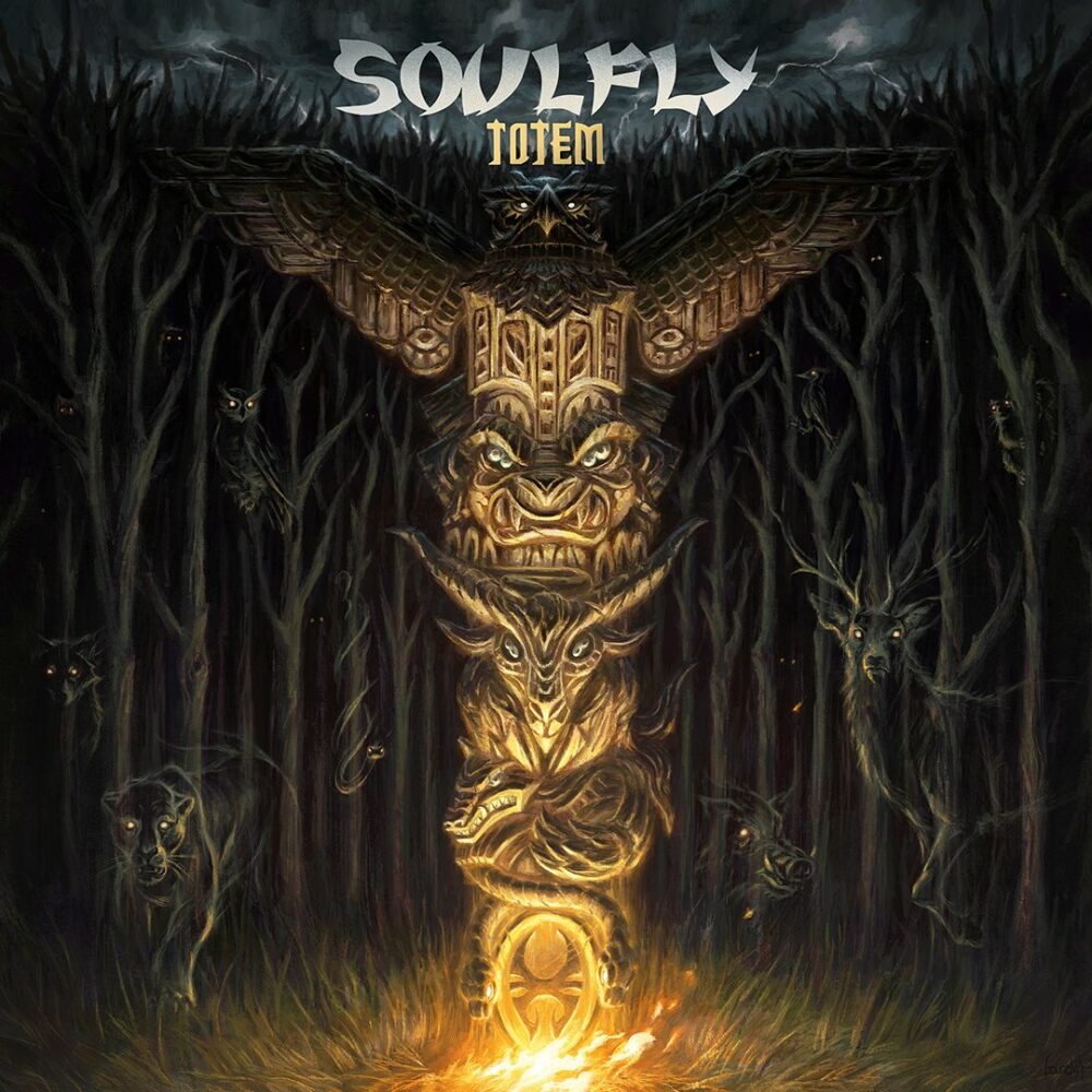 Il est vrai que j’ai très peu tâté du Sepultura post-Max Cavalera. Non pas pour cause de fidélité à toute épreuve, mais juste parce que j’étais déjà passé à autre chose, que j’avais déjà l’impression d’avoir fait le tour de ce que les brésiliens pouvaient proposer. Et de la même façon, j’ai assez peu tâté du Soulfly. Parce que le Max a tendance à capitaliser sur ses acquis et ne pas proposer autre chose que ce qu’on connaît de lui. Mais quand même, ce qu’on connaît, ou qu’on connaissait, n’est pas si mal. Et toute la com’ de ce nouvel et douzième album du groupe claironne que c’est l’album du renouveau, né de la libération des tensions du leader avec son guitariste. En même temps, après cinq ans d’absence, il faut bien appâter le client… Mais allez, je suis mauvaise langue. En fait, dès le lancement de « Totem », on sent que quelque chose a changé. Ou plutôt, que quelque chose est revenu. Non, pas le souffle épique et les titres énormes de l’époque « Chaos A.D. » ou « Roots ». Quelque chose de plus ancien. Cavalera a replongé dans son passé death metal pour en extraire un riffing et des solis assez typiques et old school. Pourquoi pas ? Bien sûr, on retrouve aussi la voix caractéristique du monsieur, et même de petites incursions black metal dans les titres ça et là. D’ailleurs, le clin d’oeil au death old school est appuyé par la présence de Donald Tardy d’Obituary sur « Scouring the vile ». Le disque a donc été conçu et enregistré en trio, avec le fiston Zion et le bassiste Mike Leon, et a fait l’objet de longues séances de compositions et mise en place. Est-ce que ça s’entend ? Oui. Est-ce que ça paie ? Oui et non. En fait, les titres sont plutôt bien foutus, mais très frontaux, et manquent de subtilité. Il est vrai que sur la deuxième moitié de l’album, Soulfly installe une progression en plaçant des titres aux structures et attributs un peu plus originaux, mais malheureusement à mon sens ça ne suffit pas, et je continue à subir les assauts incessants des musiciens de façon assez passive. Soulfly réussit ici à prouver qu’il existe sans Marc Rizzo, et sait envoyer du lourd. Mais le rendu de « Totem » reste, malgré quelques bons moments (le très bon solo final de « Ecstasy of gold », l’étonnant instrumental «Soulfly XII » ou l’aventureux « Spirit animal », avec plus de 9 minutes au compteur) assez mécanique. Ce qui est un peu le comble pour un projet glorifiant la tribalité. Bon, mais un peu vain.